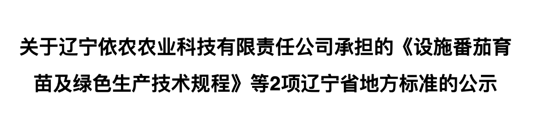 根據(jù)遼寧省地方標準管理辦法(遼農監(jiān)[2017]34號)要求,現(xiàn)將遼寧依農農業(yè)科技有限責任公司和遼寧省農業(yè)科學院共同承擔的《設施黃瓜育苗及綠色生產技術規(guī)程》征求意見稿和《設施番茄育苗及綠色生產技術規(guī)程》等2項遼寧省地方標準進行公示,并面向社會征求意見.